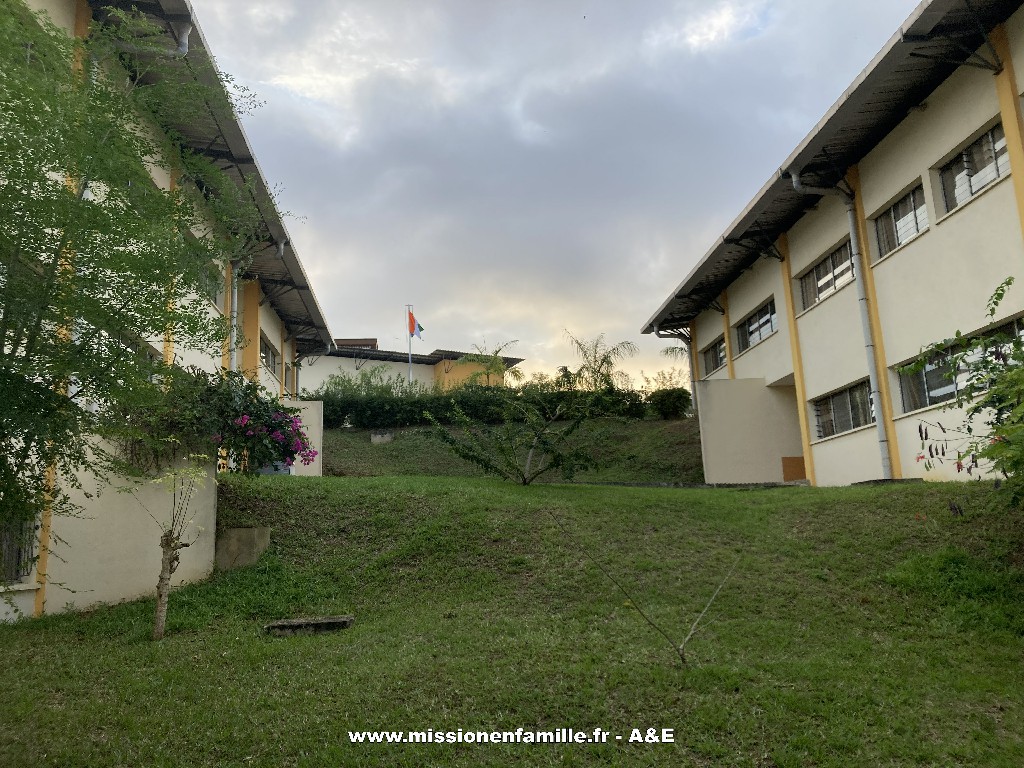 Il y a 5 ans, les sœurs ont ouvert un second groupe scolaire, privé cette fois-ci, dans la banlieue d’Abidjan, en limite Cocody-Bingerville. Il comptait 150 élèves en 2020. Elles sont près de 1300 aujourd’hui, de la TPS à la Terminale. Depuis l’ouverture, les sœurs ont établi un partenariat avec la DCC pour accueillir des volontaires français. Ce faisant, leur but est triple : donner un cadre ouvert sur le monde par ce biais, cultiver le goût des approches pédagogiques variées, soutenir l’effort de l’établissement pour réduire les inégalités de genre dans l’accès à l’éducation. Jusque-là, les volontaires étaient surtout de jeunes femmes célibataires qui vivaient dans le bâtiment de la communauté avec les sœurs. C’est la première fois qu’elles accueillent des volontaires plus âgés (enfin pas trop quand même !) et en famille.