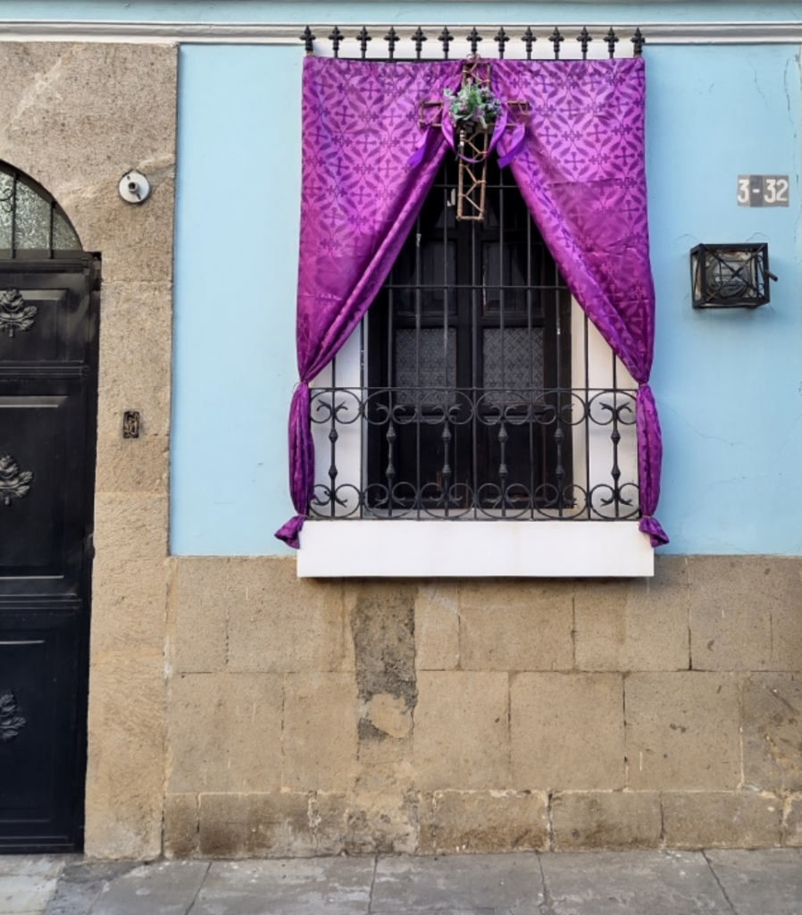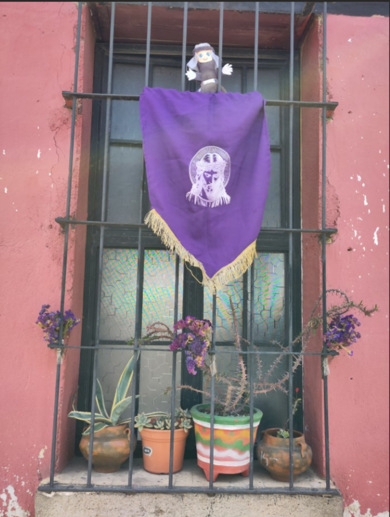 Le soir du jeudi Saint, la tradition veut qu’on fasse le tour des églises de la ville. Il faut en visiter au moins 5 pour que les demandes soient exaucées. J’ai croisé notre voisin, arborant un grand chapelet au cou. Je lui ai demandé combien d’églises il avait déjà visitées. Il m’a répondu qu’il sortait seulement acheter des tacos et qu’il avait déjà visité suffisamment d’églises quand il était petit. Comme quoi, l’habit ne fait pas le moine.