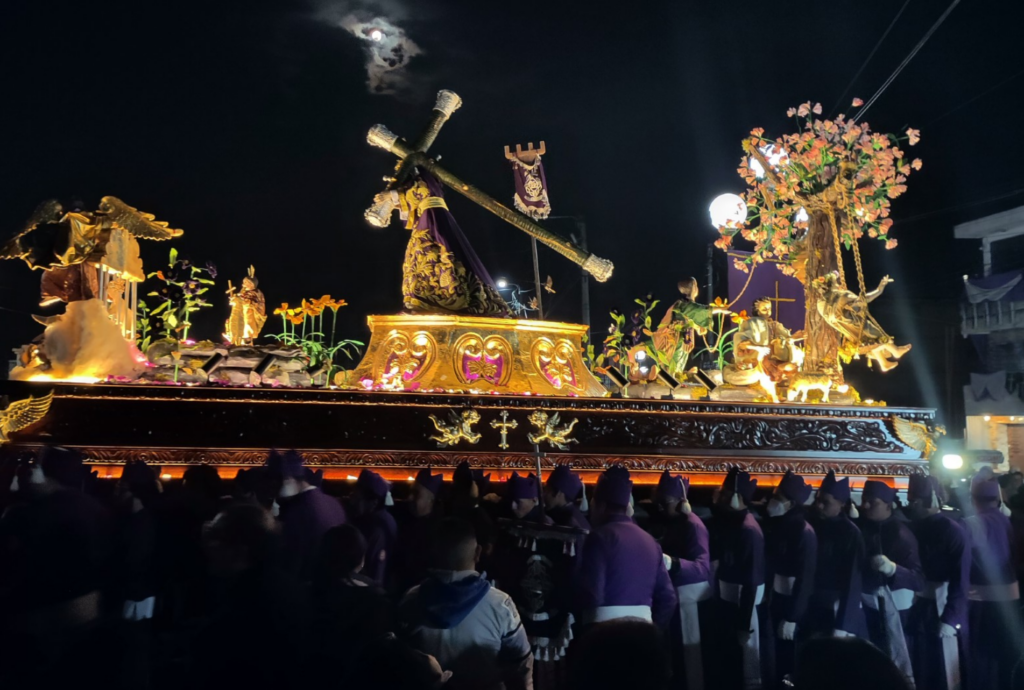 Les processions sont des défilés avec des personnes qui portent une statue (pour la plupart de Jésus ou de Marie) dressée sur des structures en bois très lourdes.